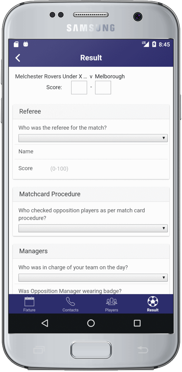 After the game, return to the App and go to the “Result” tab for the fixture. You need to enter: